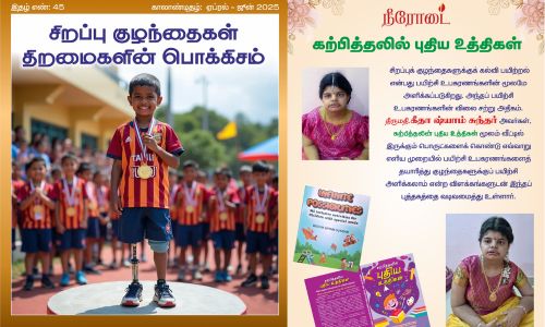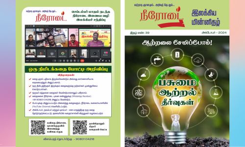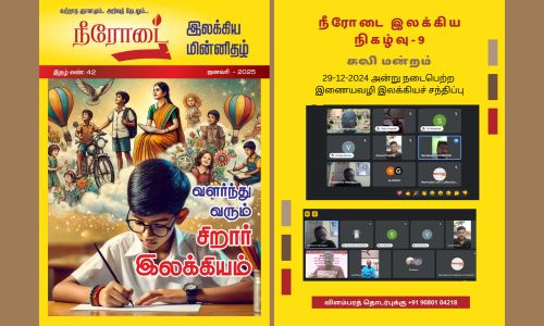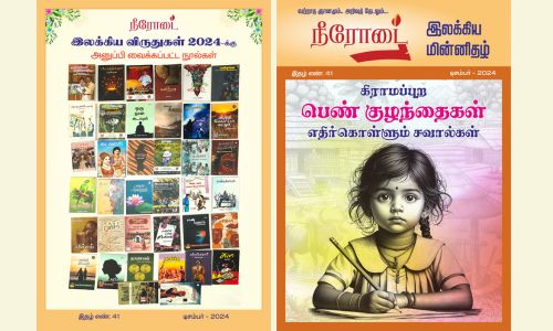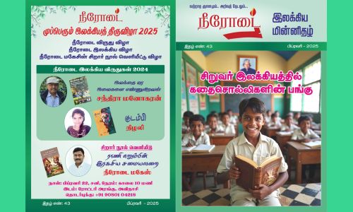 தலையங்கம் – கிராமப்புற பெண் குழந்தைகள் எதிர்கொள்ளும் சவால்கள் சிறுவர் இலக்கியம்: சிறார் பாடல் ( கார்த்திகா கவின்குமார், பாலக்கிருட்டிணன்)பசங்க (2009) – சிறார் திரைப்பட விமர்சனம் (நீரோடை மகேஸ்) கவிதை நீரோடைகவிதை பேசுது (கவிஞர் மா கோமகன், கவிஞர் கோ.தனுசன், இலங்கை)சரக்கொன்றை நிழற்சாலை – கவிதை...