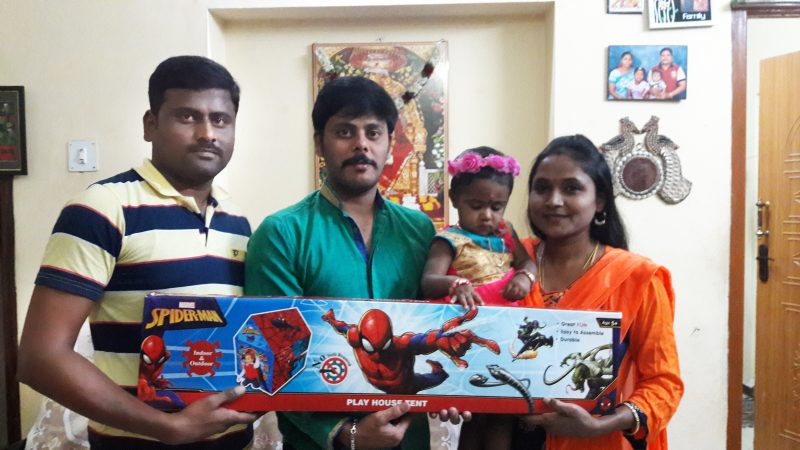 தேர்ந்தெடுக்கப்பட்ட ஐந்து மழலைகளுக்கு, பயணிக்க முடிந்த தூரங்களுக்கு நேரில் சென்று பரிசுகளை வழங்கினோம். மற்றவர்களுக்கு அஞ்சலில் அனுப்பிவைத்தோம். அவர்கள் பதிலுக்கு அதை புகைப்படம் எடுத்தே அனுப்பியது சிறப்பு Child Photo Contest Gift Festival.